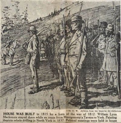 During the Upper Canada Rebellion (1837~1838), William Lyon Mackenzie stayed in the house while en route from Montgomery's Tavern to York.